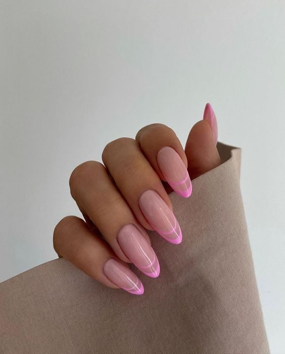 Minimalism meets modern design with this glowing outline effect. A thin neon pink border on a pastel base gives off a soft radiance that feels subtle yet impactful—ideal for those embracing the neon pink summer trend in 2025 with restraint.