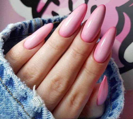 Pairing soft pastel pink nails with denim creates a relaxed, polished aesthetic. This look speaks to those who value effortless style and natural beauty in their summer nail choices, offering the ideal balance for day-to-night wear.