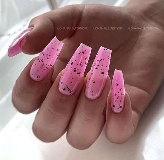 These nails are a celebration of color and creativity, with vivid strokes of pink, orange, blue, and yellow forming an abstract floral garden. Each nail blossoms like a petal, creating a look that’s bright, artistic, and full of life. A great choice for anyone looking to add aesthetic flair to their pink nail designs this summer.