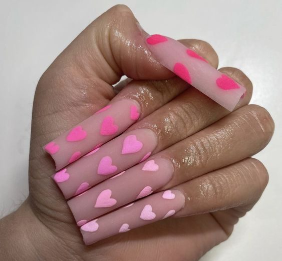 Soft pastel pink and delicate heart motifs come together in a design that’s whimsical, romantic, and effortlessly charming. Perfect for casual dates or summertime gatherings, these nails capture the sweeter side of cute pink nail aesthetics in 2025.
