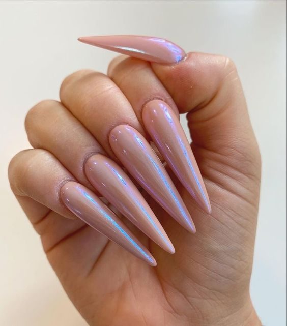 Long stiletto nails with an iridescent glow reflect shades of summer sunsets and shimmering water. Ideal for those who crave drama, this radiant design is glamorous, bold, and ready to shine at beach parties and rooftop events.