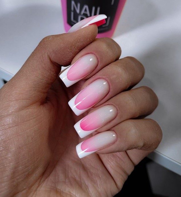 Reimagining the classic French tip, this short square gel nail design features bold pink tips over a sheer base, with delicate shimmer at the cuticles. It’s minimal yet modern—a perfect blend of tradition and trend, suitable for brunches, date nights, or workday elegance.