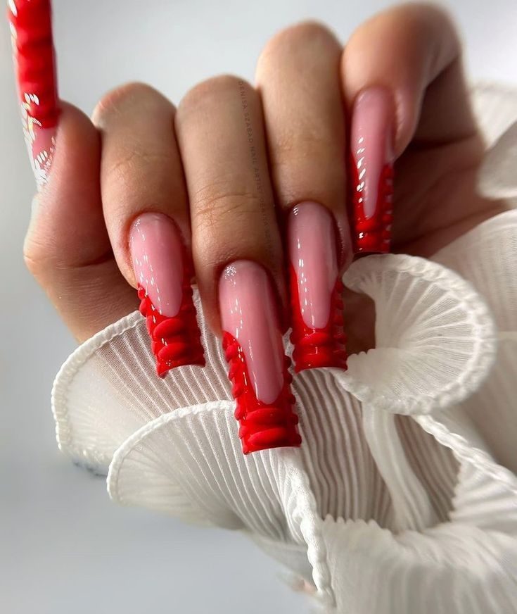 Glossy, ruffled red gel polish mimics the texture of flowing fabric. These short simple nails are flirtatious, eye-catching, and bold—a beautiful choice for date nights or statement-making daytime outfits.