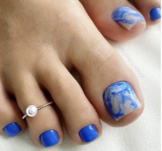 Take a bold step into color with psychedelic swirls that bring together bright blues, sunny yellows, and soft purples. Reminiscent of sunset skies after a music festival, this design radiates positivity and playfulness. Each toe becomes a canvas of swirling color, making this pedicure ideal for those who love attention-grabbing, vibrant summer looks.