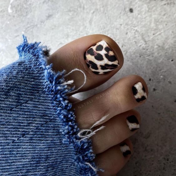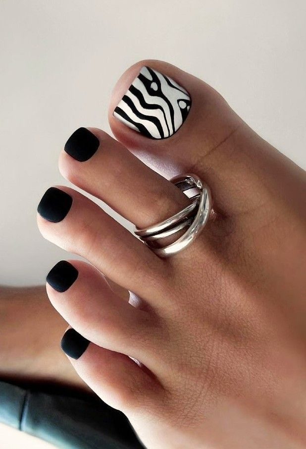Make a bold, fashion-forward statement with a dramatic matte black base and leopard print accent on the big toe. This design celebrates fierce individuality and pairs beautifully with both dark and light skin tones. Whether worn with strappy heels or simple slides, this powerful pedicure exudes confidence and trendy elegance. Thanks to modern 2025 gel nail technology, intricate patterns like this are not only wearable—they’re long-lasting and runway-ready.