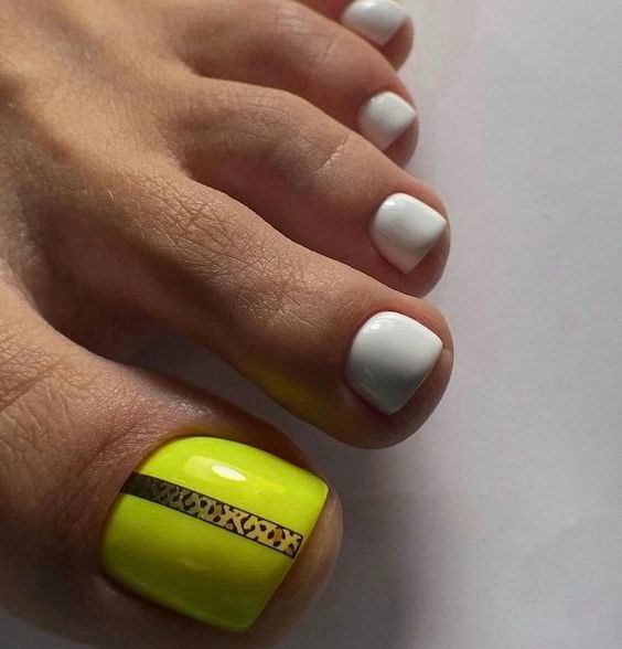 Turn up the brightness with neon yellow toes accented by bold black graphics. This design is unapologetically vivid and ideal for making a statement. Whether you’re wearing neutral outfits or colorful ensembles, neon toes are guaranteed to elevate your summer style. This pedicure trend suits all skin tones and is perfect for embracing the bold, glowing energy of summer 2025.