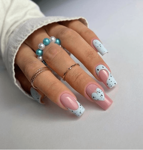 For the young-at-heart bride, soft pastel shades and playful polka dots are a sweet nod to fun-loving style. Long coffin-shaped nails give you plenty of space to experiment with different pastel hues and subtle dot patterns. This cheerful design pairs perfectly with a more casual or garden-style wedding, adding a splash of personality to every toast and twirl on the dance floor.