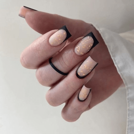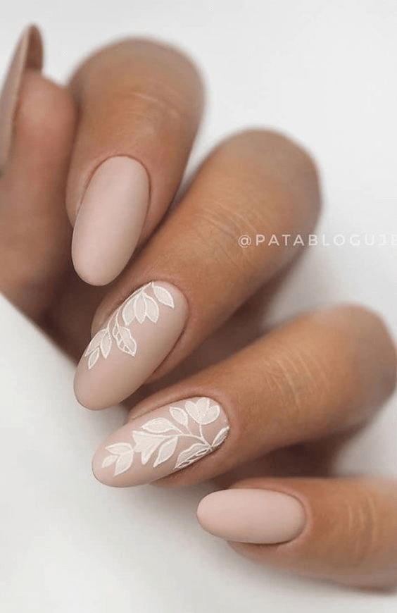 Soft, muted tones and delicate leaf motifs bring the serenity of the outdoors into your bridal look. Inspired by the gentle fall of autumn leaves, this design captures subtle beauty without loud colors or patterns. A matte finish paired with a short square shape adds a modern edge to the classic French manicure style. It’s the perfect choice for the bride who adores simplicity and finds her statement in the little details.